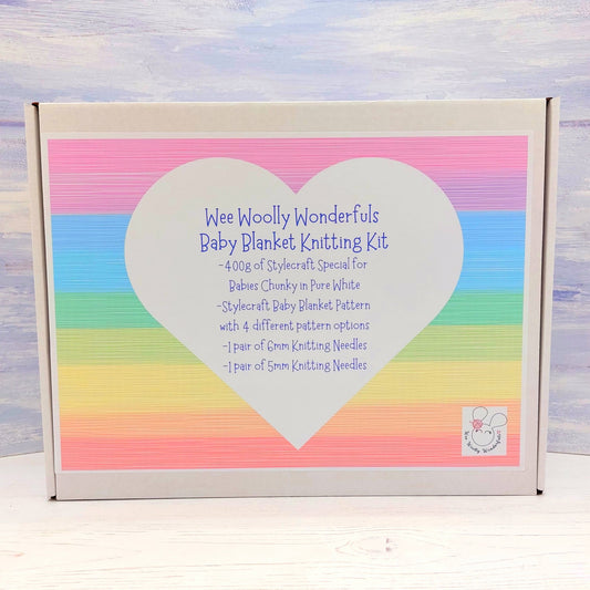 Baby Blanket Knitting Kit - 4 Pattern Designs | Blue, Pink, White or Cream