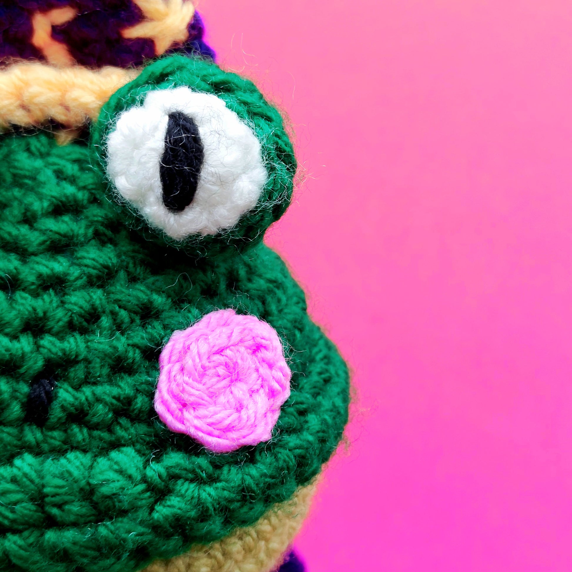 Fizzy the Frog is made with over 200g of chunky yarn and a 4mm crochet hook. The yarn used, quantities and colours is detailed in the pattern.
