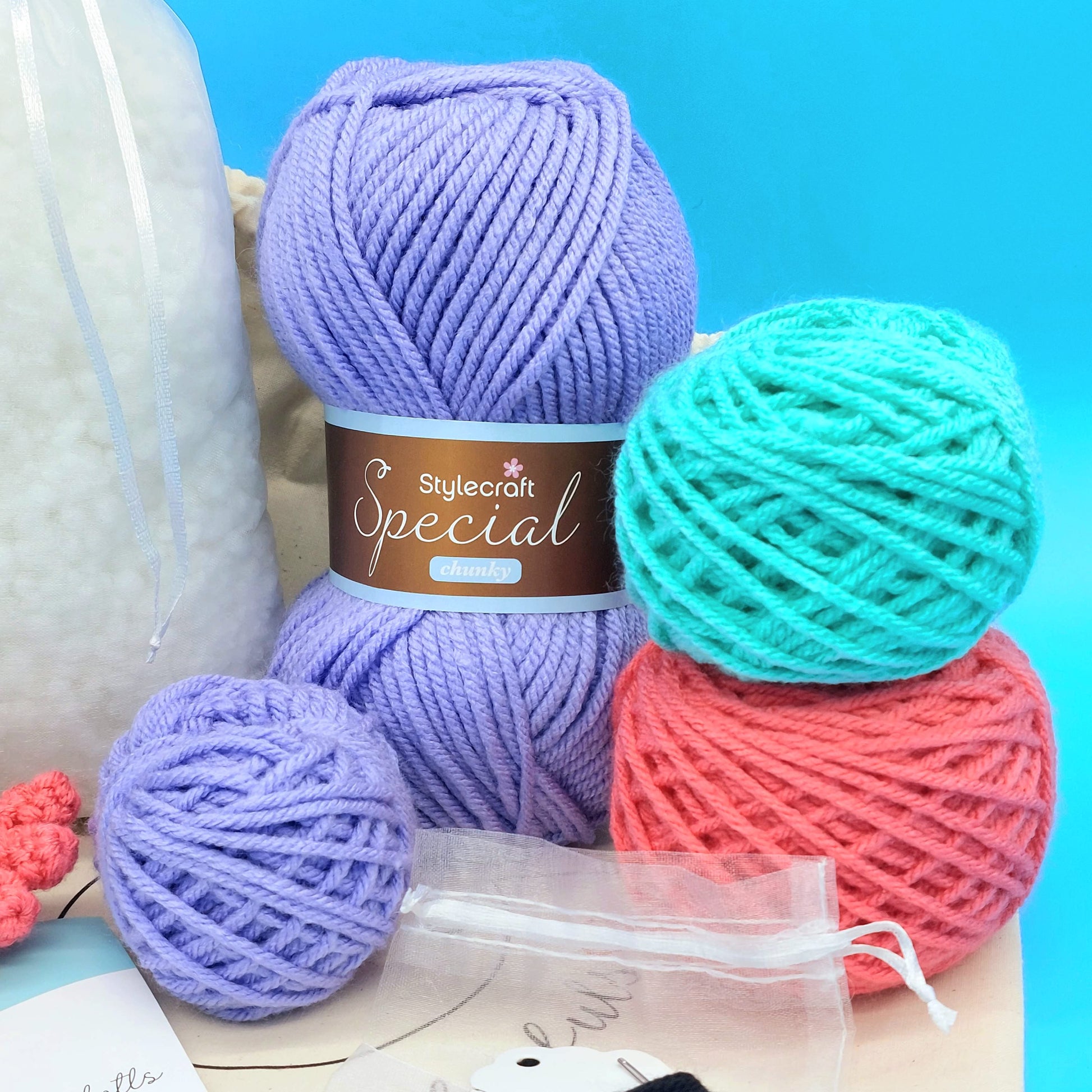 - All of the required yarn to make either Bubbles or Barnacle the Axolotl and their pet starfish or octopus