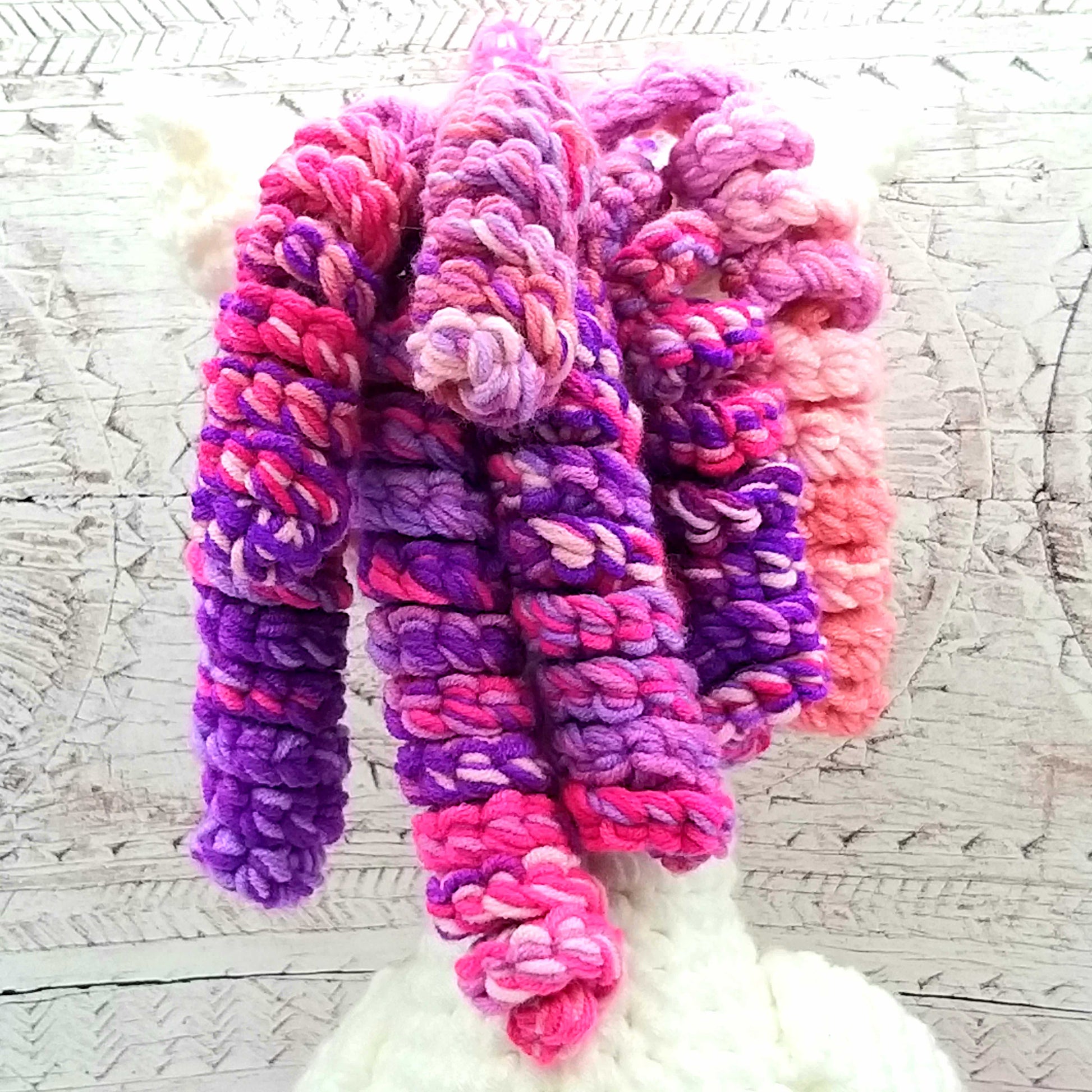 Zara the Huge Unicorn is made by using 3 strands of Chunky wool together, and she is a magnificent make!  Zara is a whopping 57cm seated and 74cm when standing - and she gives THE best cuddles. A fun larger than life project to give you a fun crochet make!